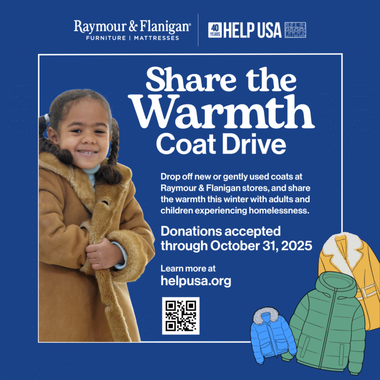 HELP USA is partnering with Raymour & Flanigan to host a coat drive, inviting the community to drop off gently used coats at participating stores. You can donate at the following NY locations: